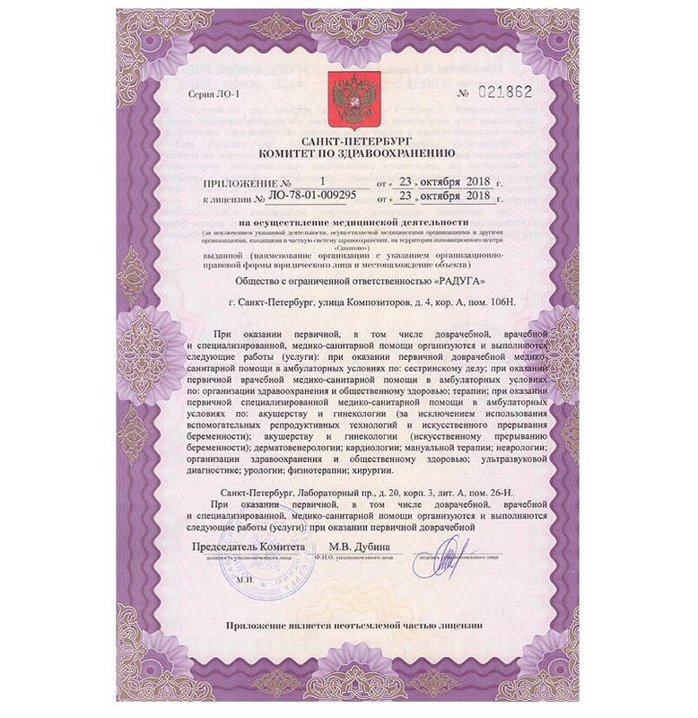Первый опыт посещения клиники был с урологом (меня упекали в больницу со страшными диагнозами, в другой клинике тоже расписали жуткие диагнозы с лечением антибиотиками), решили найти клинику ближе к дому, и пошли в Радугу со всеми анализами (врача, который меня принимал-не помню фамилии, к сожалению, помню, что он живет недалеко, и то ли это его клиника, то ли он директор). В общем-то меня посмотрели, взяли 1 анализ крови и сделалаи узи, и оказалось, что все гораздо проще, и никаких дорогостоящих лечений не нужно.